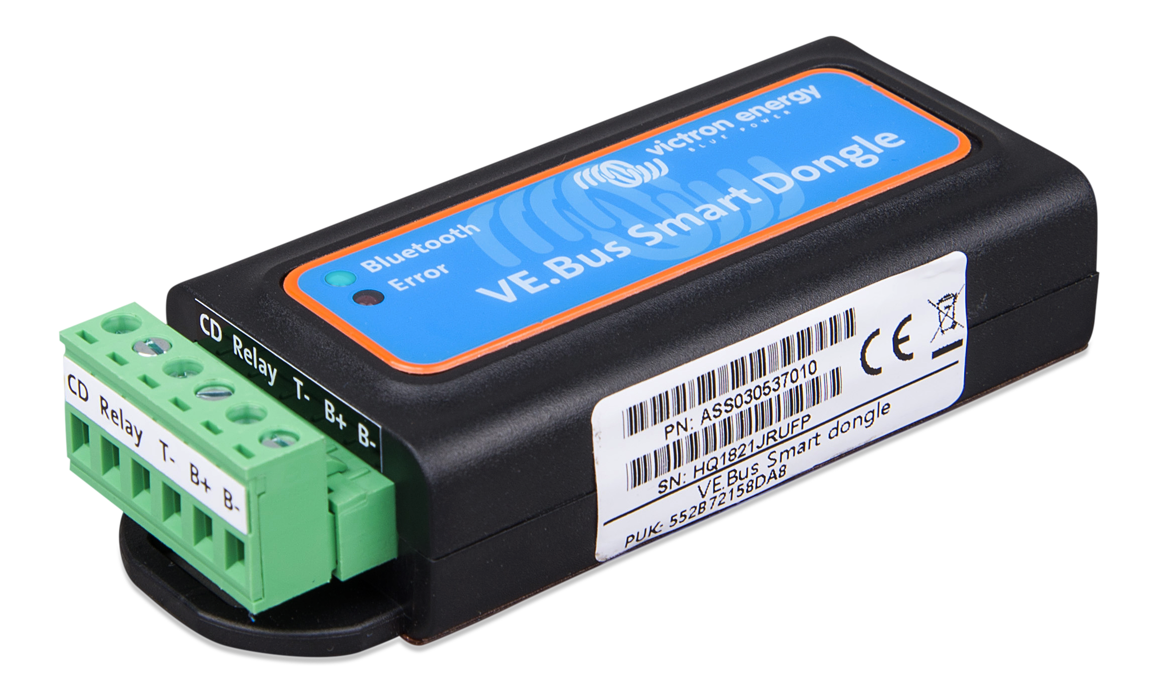 Zunächst einmal ist er das Bluetooth-Zubehör für unsere Wechselrichter-/Ladegerät Palette. Multis, MultiPlusse, MultiPlus-II, MultiGrid, MultiGrid-II, Quattros und unsere Modellreihe der Phoenix Wechselrichter mit einem VE.Bus-Port. Nach der Installation können Sie mit der VictronConnect App den Betrieb überwachen und auch das System bedienen: Änderung der Eingangsstrombegrenzung sowie Umschalten zwischen An, Aus und Nur-Ladegerät-Modus.