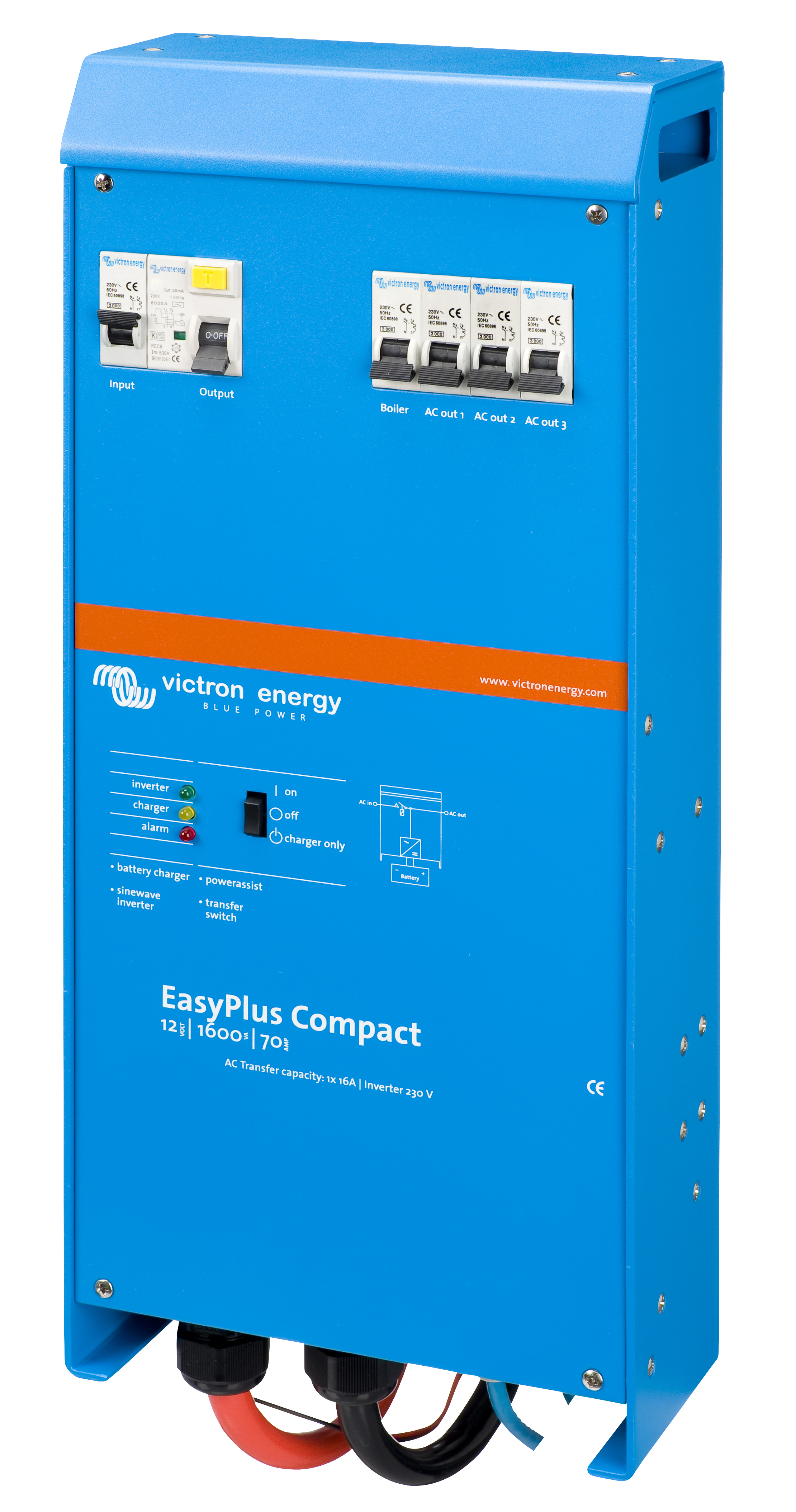 Das EasyPlus ist ein multifunktionelles Energiesystem, das einen leistungsstarken Sinuswechselrichter, ein fortschrittliches Batterieladegerät, einen superschnellen AC-Transferschalter und einen AC-Verteiler in einem einzigen leichten und kompakten Gehäuse vereint. Das System wurde für Personen ausgelegt, die den Komfort und die Freiheit eines kompletten Energiesystems genießen möchten, ohne dabei jedoch Zeit mit der Installation von einzelnen Komponenten und schwierigen technischen Verfahren zu verlieren.